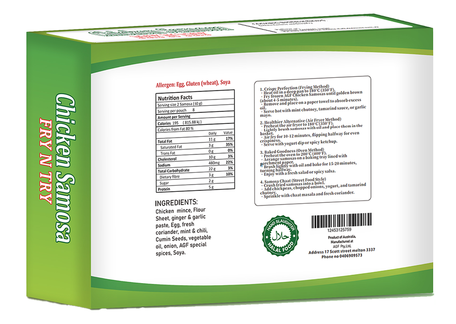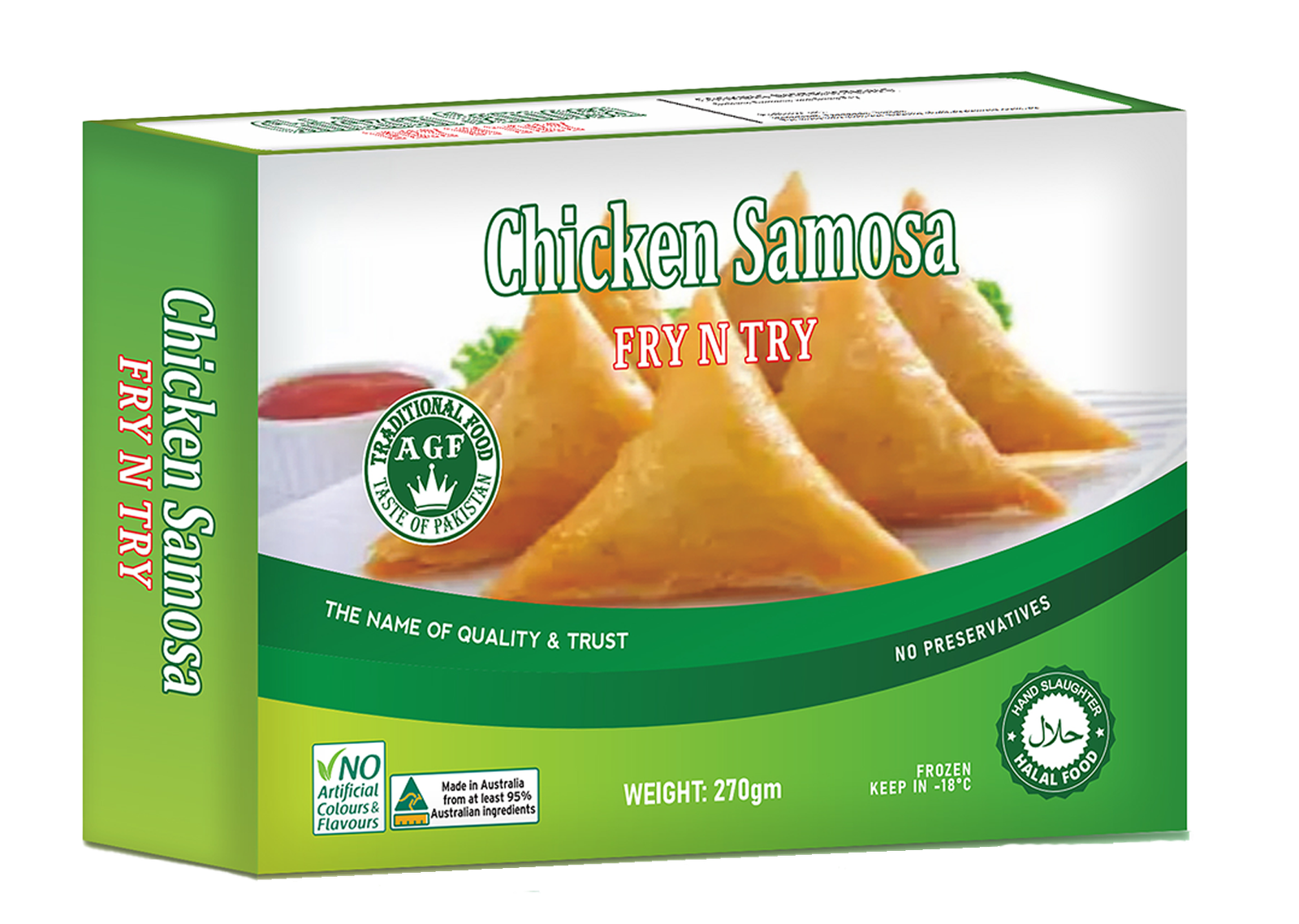 •Fry frozen AGF Chicken Samosas until golden brown (about 4-5 minutes).